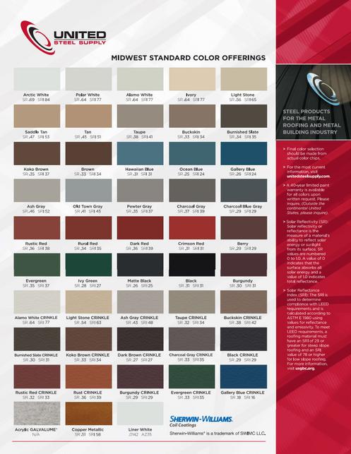 This digital color chart is to be used for approximations of our metal colors only. It is intended to be viewed on a computer monitor. Colors will vary depending on your computer monitor and monitor settings. Please ask for a printed color chart or an actual metal sample for color matching purposes.